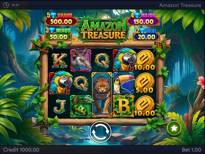 Amazon Treasure keeps the overall structure simple while letting its bonus rounds drive most of the gameplay potential. The Hold + Win feature with jackpot rewards up to 500x and the Free Spins round with doubled wild payouts are the main ways to reach the game’s 1,500x maximum win.