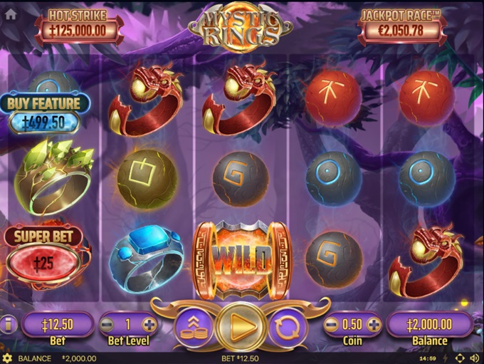 Mystic Rings doesn’t overload players with too many mechanics. Instead, it combines a traditional slot structure with a few well-placed extras like jackpot access, affordable bonus buys, and upgraded Wilds in free spins.
